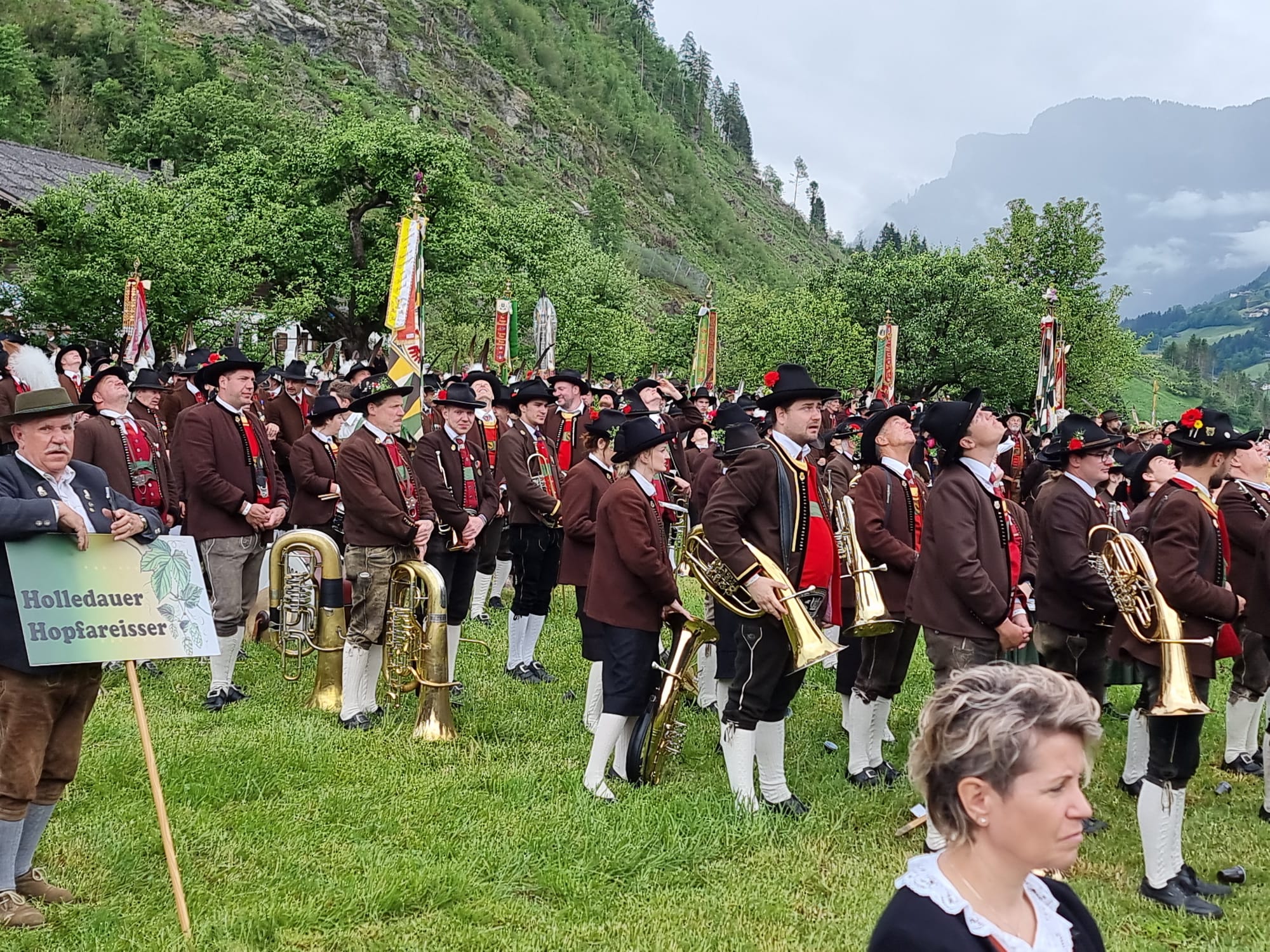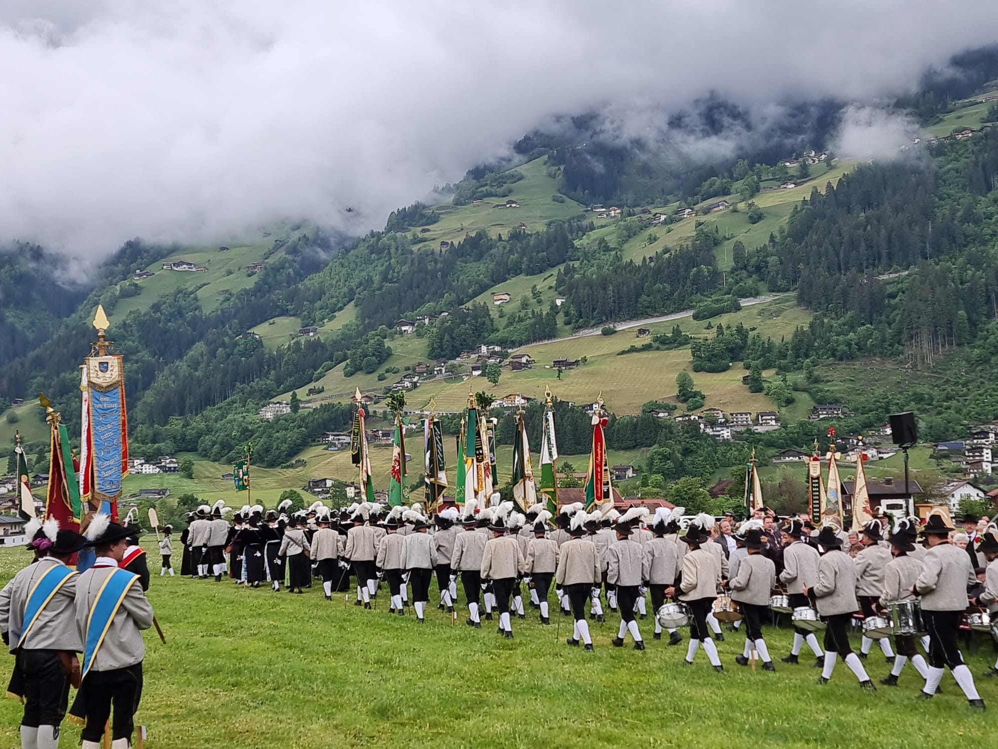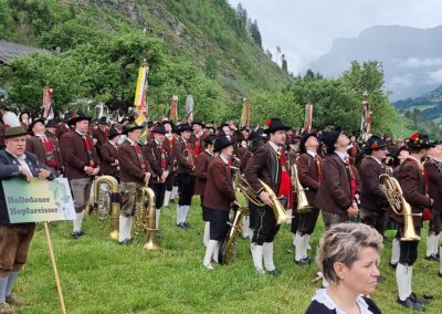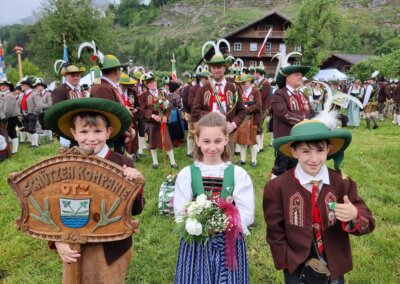 Nach der feierlichen Feldmesse, an der zahlreiche Schützenkompanien sowie viele Traditionsvereine teilnahmen, reihten wir uns in den großen Festumzug ein. Beim Marsch durch das Dorf wurden wir von den vielen Besucherinnen und Besuchern begeistert empfangen – eine Stimmung, die man kaum in Worte fassen kann.