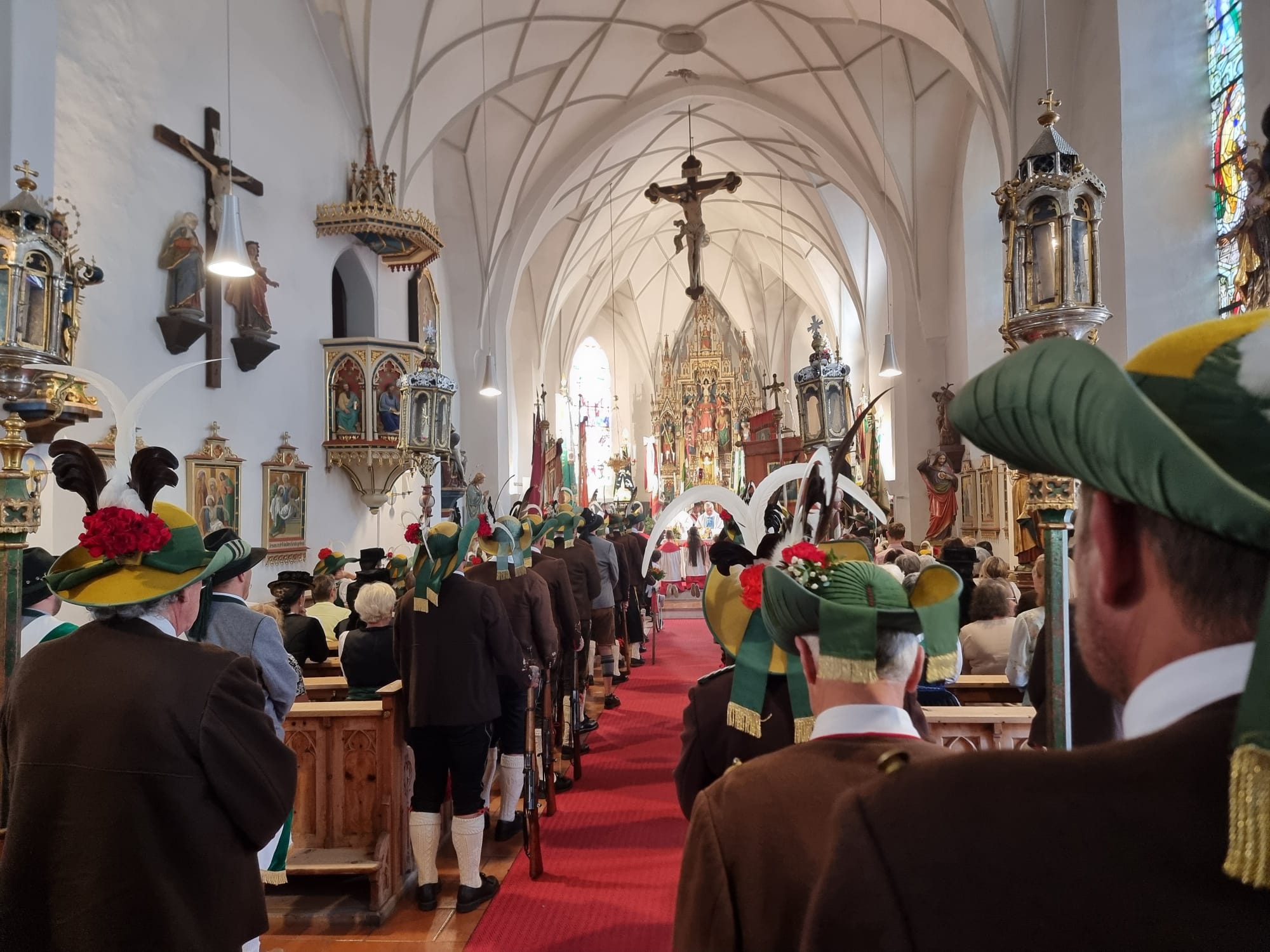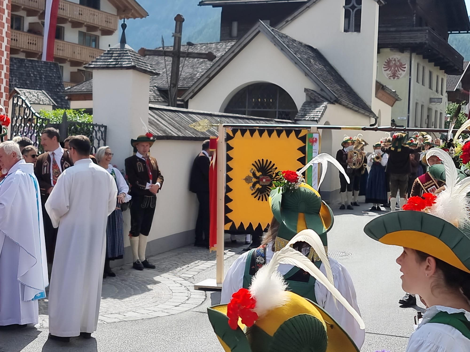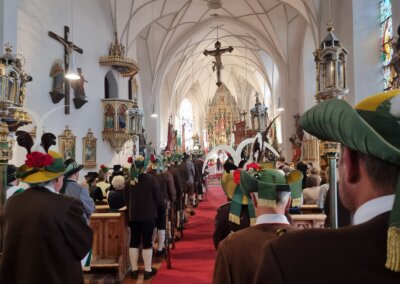 Nach dem Eintreffen der Fahnenabordnungen beim Schützenheim um 08:30 Uhr wurde um 09:00 Uhr die Heilige Messe mit anschließender Prozession abgehalten. Im Rahmen dieser Feierlichkeiten erfolgte die Segnung der restaurierten Talfahne.
