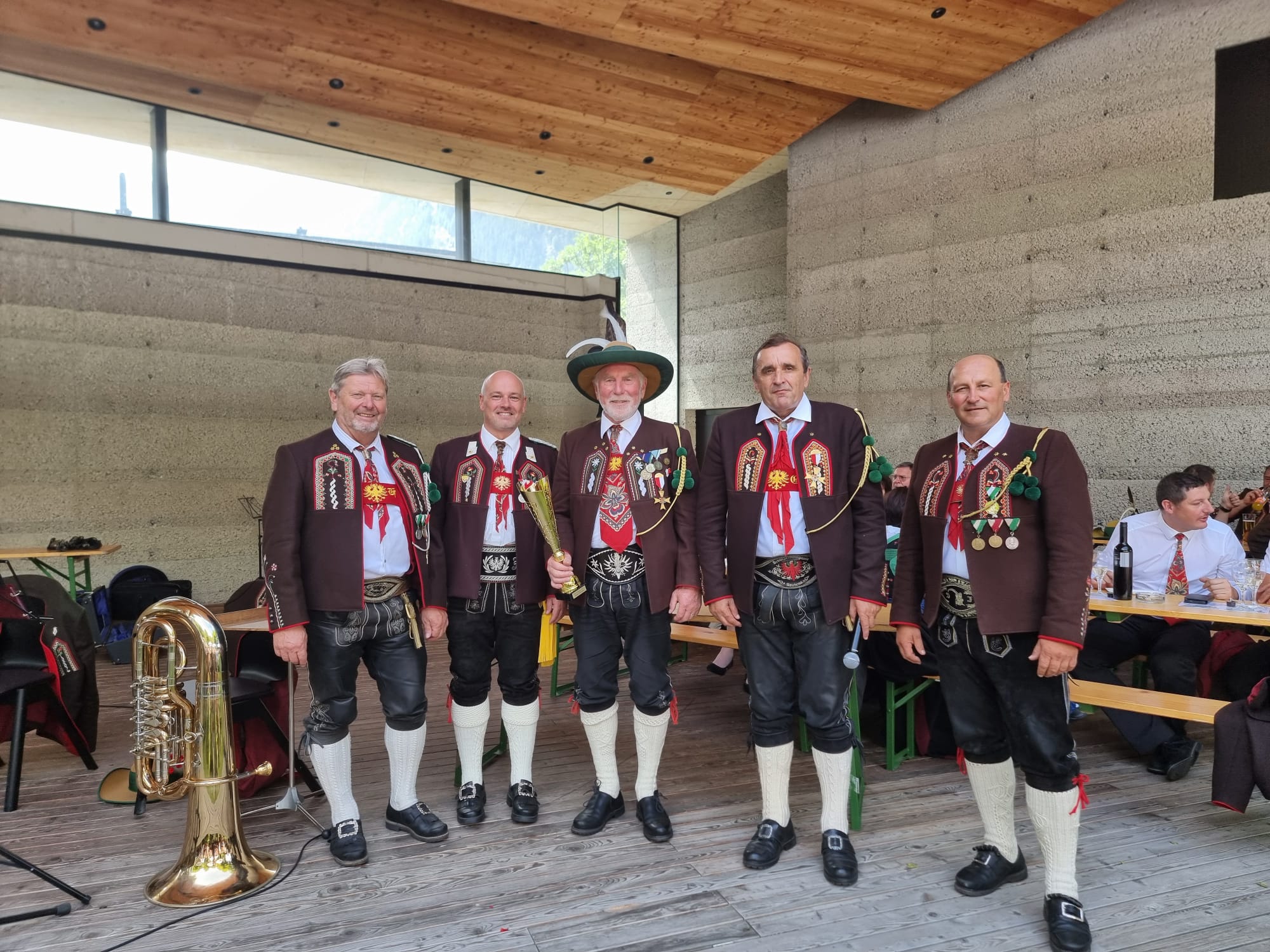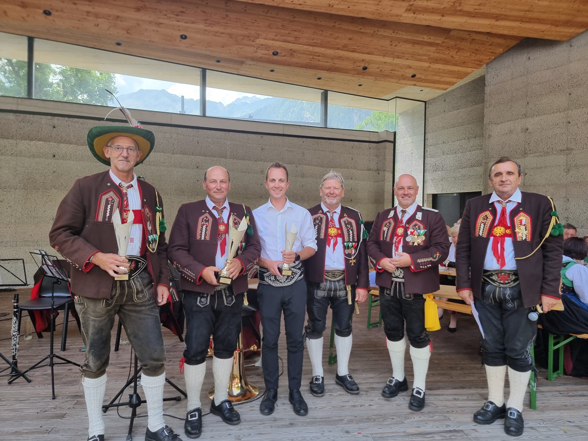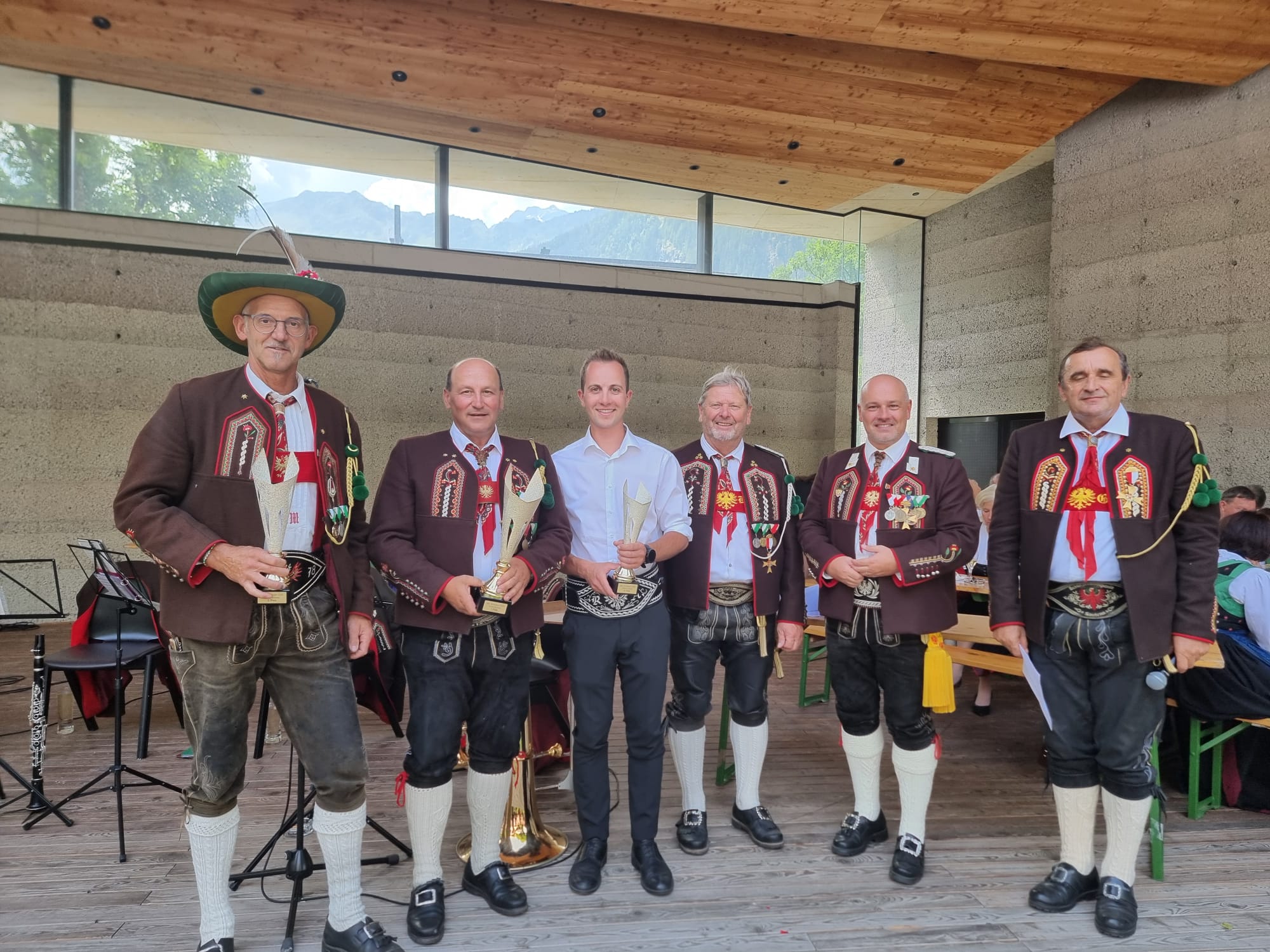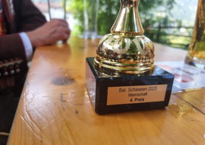 Im Anschluss daran wurde beim Musikpavillon in Umhausen die Preisverleihung des Bataillonsschießens 2025 durchgeführt. Die Mannschaft der Schützenkompanie Oetz – bestehend aus Frank Bacinger, Noah Bacinger, Horst Gstrein und Johannes Göbhart – erreichte dabei den sehr guten 4. Platz.