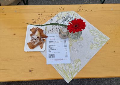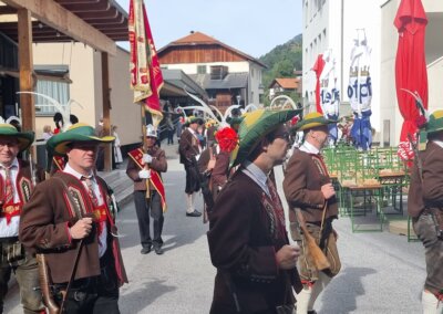 Der erste Halt war wie gewohnt beim Kassl’s Altar, weiter ging es zum Speckle-, anschließend zum Stern-Altar und zum Abschluss zum Schulplatz. Dort fand auch das Kirchtagsfest statt, organisiert von der Schützenkompanie Oetz. Bei Speis und Trank wurde noch lange gemeinsam gefeiert, gelacht und geplaudert – ein rundum geselliger Tag.