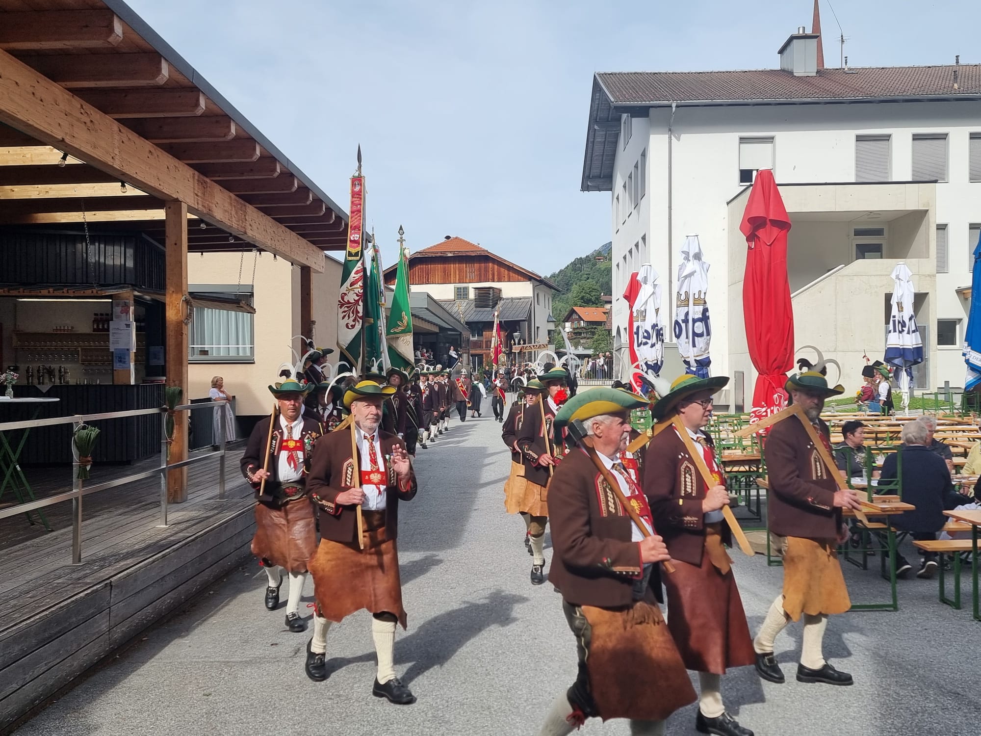 Der erste Halt war wie gewohnt beim Kassl’s Altar, weiter ging es zum Speckle-, anschließend zum Stern-Altar und zum Abschluss zum Schulplatz. Dort fand auch das Kirchtagsfest statt, organisiert von der Schützenkompanie Oetz. Bei Speis und Trank wurde noch lange gemeinsam gefeiert, gelacht und geplaudert – ein rundum geselliger Tag.