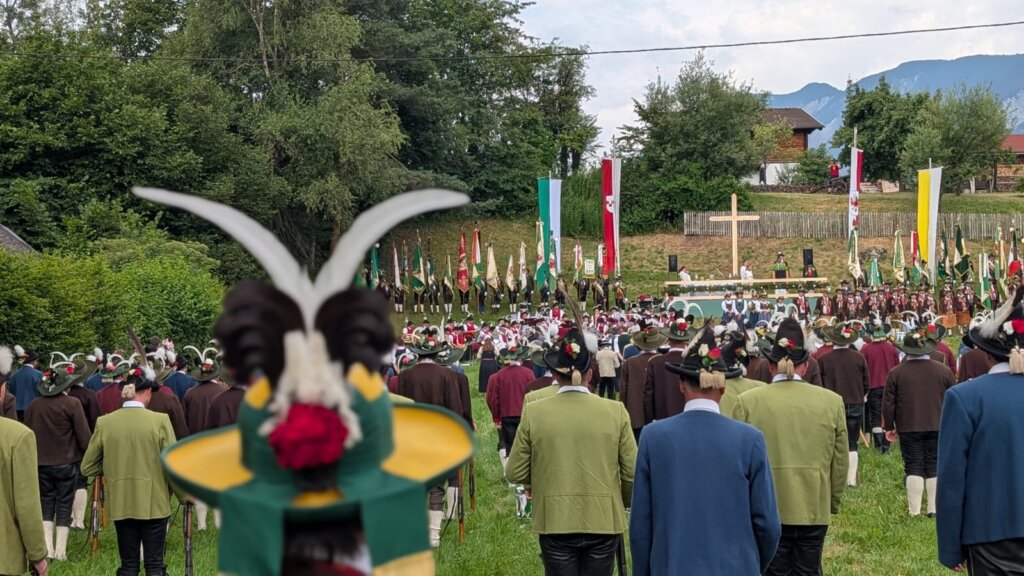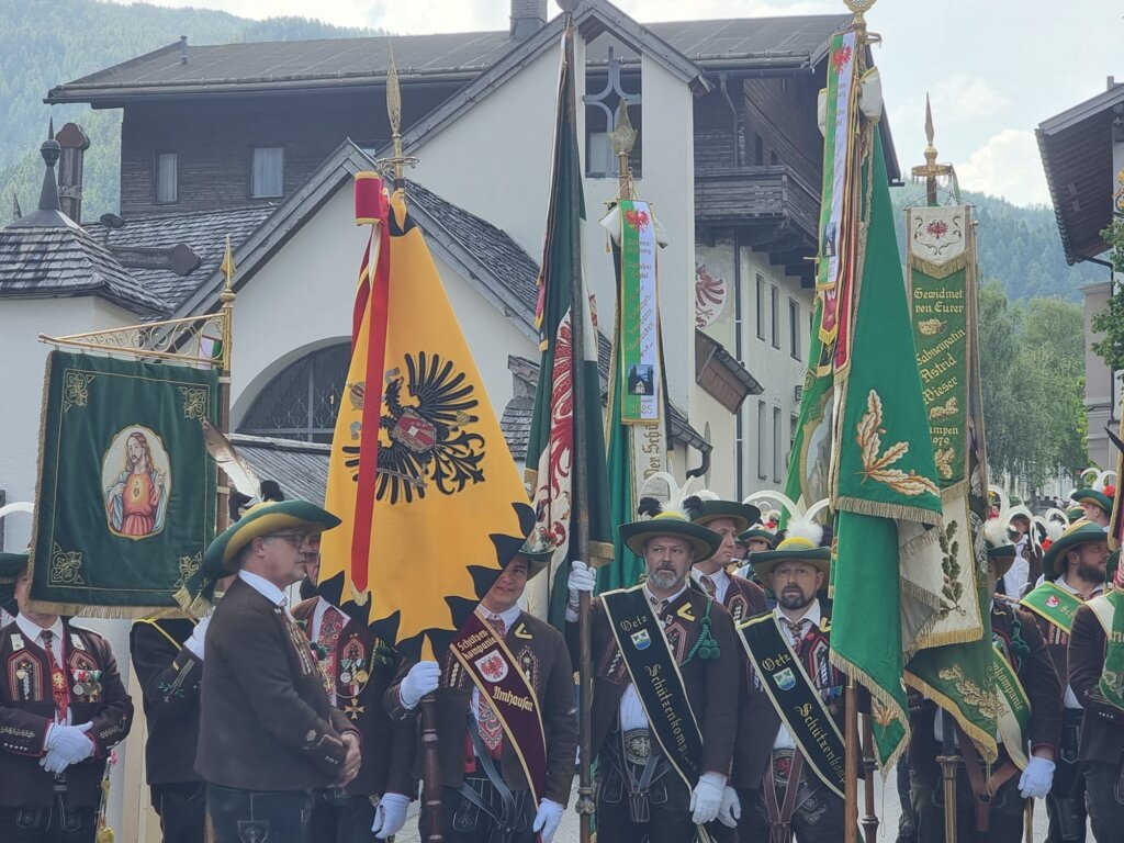Einweihung der renovierten Ötztaler Talfahne in Umhausen Am Freitag, den 15. August 2025, fand in Umhausen die feierliche Einweihung der renovierten Ötztaler Talfahne statt. Nach dem Eintreffen der Fahnenabordnungen beim Schützenheim um 08:30 Uhr wurde um 09:00 Uhr die Heilige Messe mit anschließender Prozession abgehalten. Im Rahmen dieser Feierlichkeiten erfolgte die Segnung der restaurierten Talfahne.…